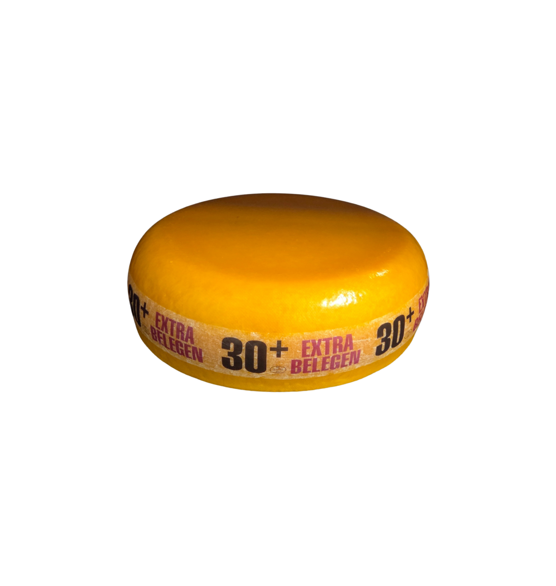 De aanduiding 30+ betekent dat het vetgehalte van de kaas 30% is, berekend op de droge stof.