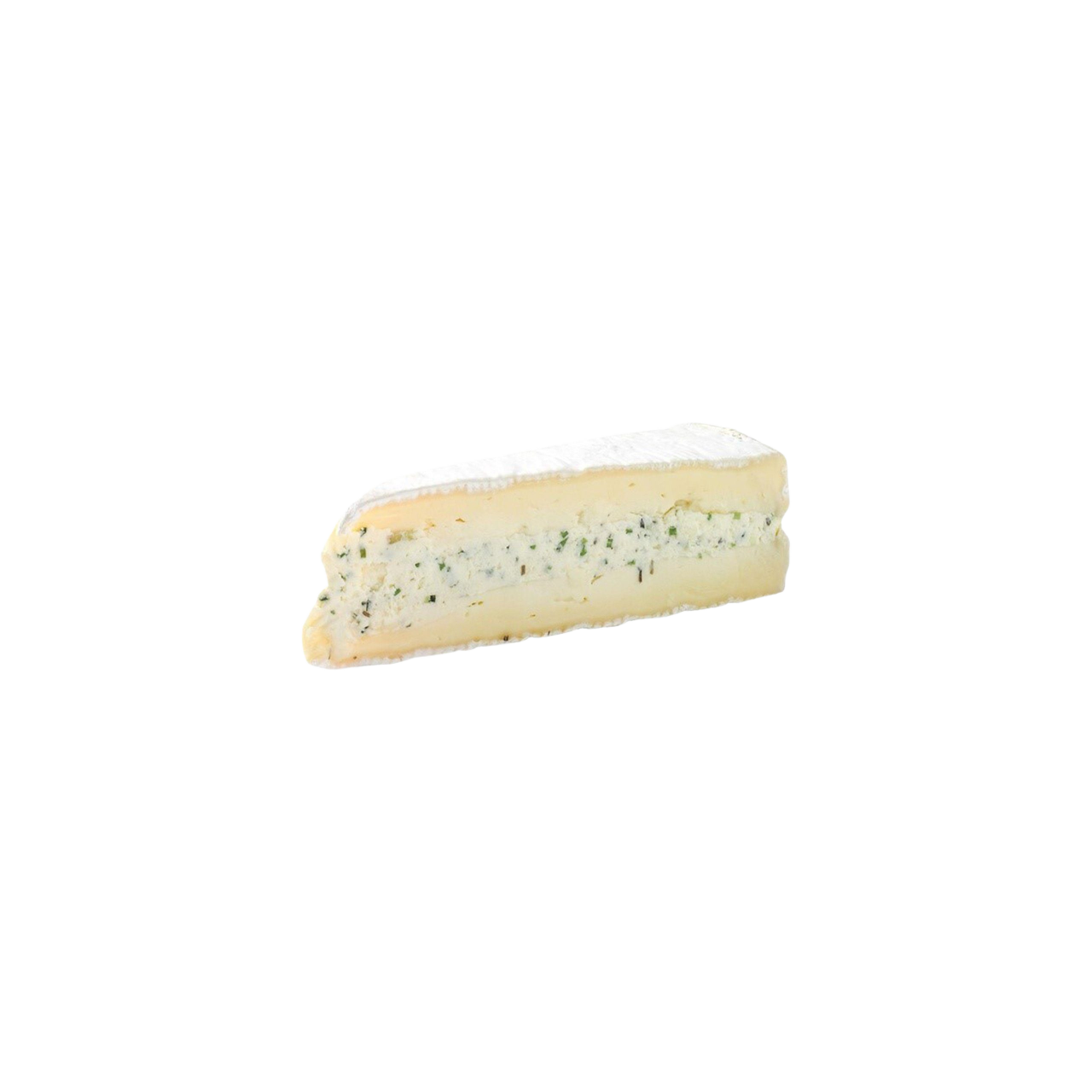 Deze zachte Franse roombrie is gevuld met Hollandse roomkaas met bieslook.