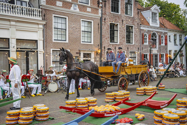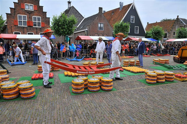De Kaasmarkt in Edam vindt plaats in de zomermaanden, elke woensdag van ongeveer 10:30 tot 12:30 uur.